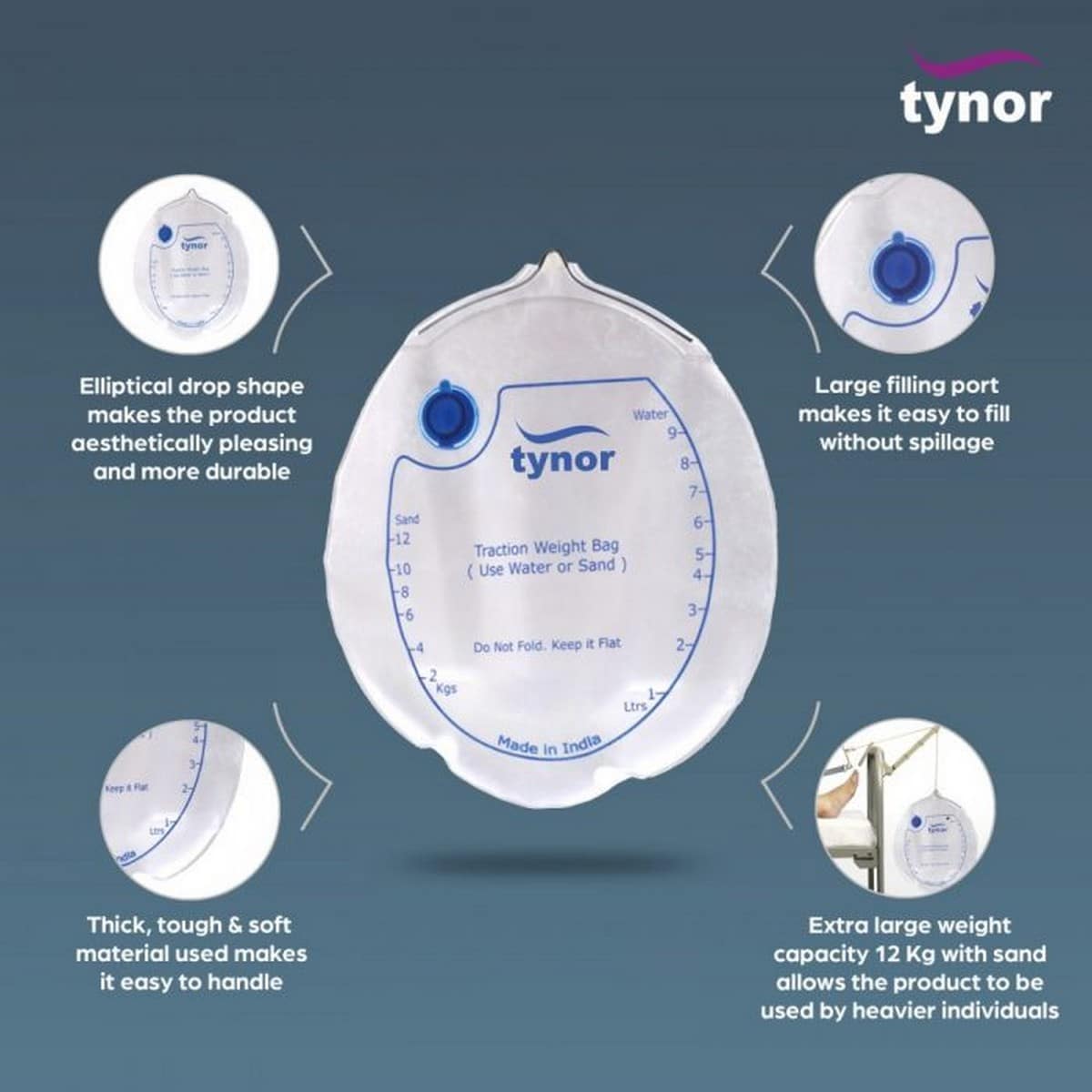 Tynor Traction Weight Bags Are A Type Of Traction Halter That Is Used To Hold The Pelvis Area Of The Patient. They Are Used To Pull The Sacrum, The Lumbar Area, And The Thoracic Area Of The Vertebral Column.
